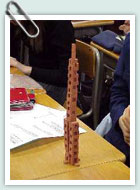 この授業の集大成として、各自が「両端から支える」作品を自由に作成し、強さを競う。