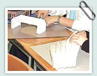 美しい折板を作りながら、力と形のバランスを考える。テキストの型紙にそって折板を作成した後は、自分のオリジナル作品を作ってみる。 |