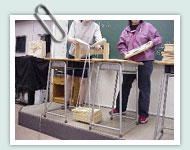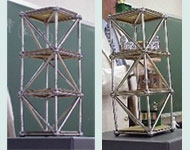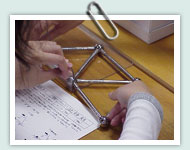また、4つの支点をもつ構造物による実験を通して、実際のほとんどの建物に用いられる構造である不静定構造物の成り立ちをイメージする。 |