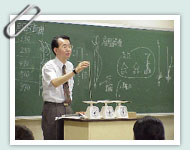 学生が興味をもち、授業に積極的に参加するためには、リアルなライブ感覚が必要になる。教師から学生集団への語りでなく、教師が学生個人個人に話しかけるような臨場感が大切である。そのためには、教材を多人数で見ているという感覚でなく、一人一人が見ている感じを作り出すことが重要になる。教室の前席と同じように、後ろからでも十分に見えるような仕掛けとして、大型スクリーンは有効である。たとえば、全員の前でデモンストレーション実験などを行う時に、教室の後ろの方にいる学生には見えないような小さいものの場合、CCDカメラなどで拡大し、多くの人に実験結果を見やすくすることが可能になる。 |