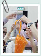 実験しながら、強い作品、弱い作品、様々な壊れ方を観察し、より強い形をつくる工夫を体感する。 |