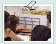 授業内における教員と学生個々との双方向のやりとりは理想的である。つまりこれまでは教員からの情報発信が主だった授業内でお互いが対話することを助け、お互いが理解しながら実験や実習を進めることの一端を可能にする。具体的には、学生が理解しにくい点についてマルチメディアを使って、その場で絵や図を見せながら質問したり、補足説明することができる。学生との対話はこれまで授業内で十分に行うことは難しかったが、表現手段が多様化されることによって対話がスムーズになり、授業内容に対してより深い理解が得られることになる。 特に住居の構造のような理論的学問は難解でとっつきにくく、初学者はイメージできずにこれまでは後れをとることが多かった。上記のようなマルチメディアの活用により、楽しくまたイメージしやすい授業を組み込んで学生の抵抗感を少なくすることも、多様化した学生ニーズに応える体験型授業の効果のひとつである。 これまで述べてきたように、体験的視覚型の授業は導入教育(興味付け)としては適している。ただし、論理的蓄積としての効果はうすい。これについては古典的とも言える演習や思考の繰り返しがやはり効果的である。したがって、この授業では、実感できる実習と理論的な展開とを同時に進めることで、理論を理解する上で助けになるようなイメージを学生にもたせるとともに、対応する力学も並行して教えている。導入の平易さと詳細な理論の追究の両輪が教育効果をには欠くことが出来ないことを本授業の実践を通して学んだ。 |