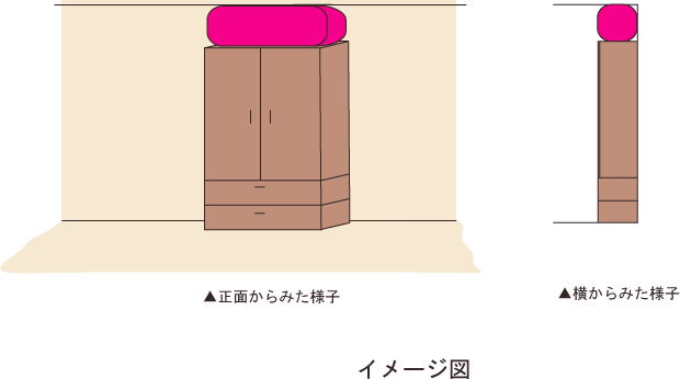 家具と天井の間に設置することで、家具が前傾するのを防ぐ効果があります。