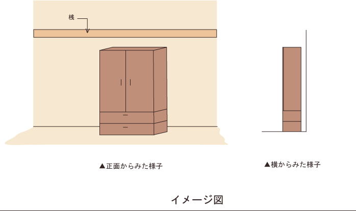 壁にぴったりつけておく配置よりも倒れやすくなってしまいます。