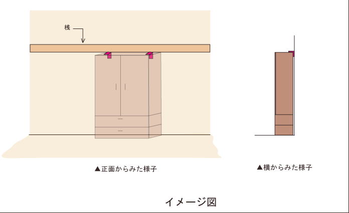 壁と家具を直接固定するため、転倒防止効果が高い対策です。