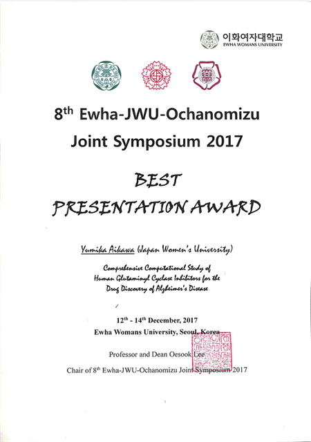 Aikawa Y., Tsumura K., Narita T., Takayanagi H., Ishiguro R." Electrical Transport through Junctions between MoS2-Electric Double Layer Transistor and Conventional Superconductor Al." Joint Symposium 2017, Ewha Womans University, Japan Women's University and Ochanomizu University for the promotion and research for women in science (2017).