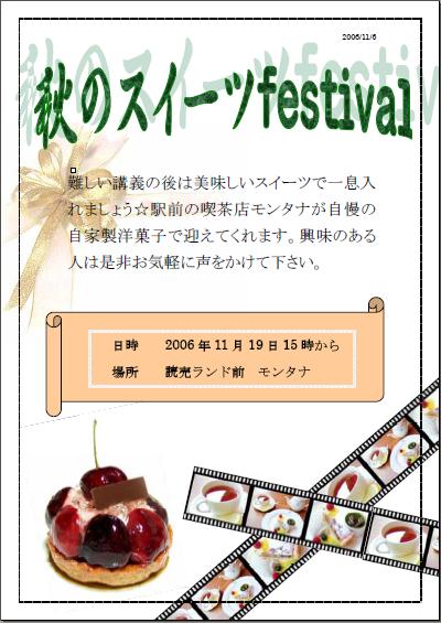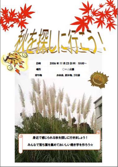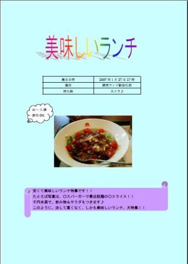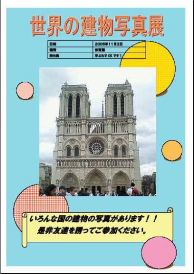 ワードアート・表枠組み・オートシェイプの使い方、レイアウトや内容などもじっくり評価してください。