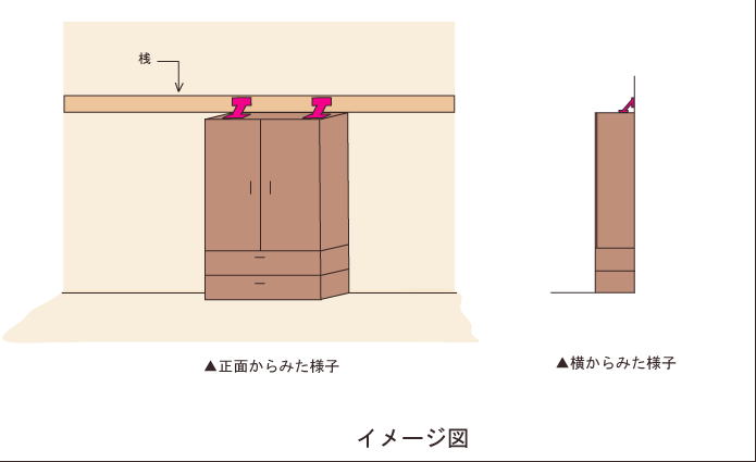 壁と家具を直接固定するため、転倒防止効果が高い対策です。