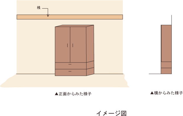 壁や柱にすき間ができないようにぴったりとつけて家具を配置します。