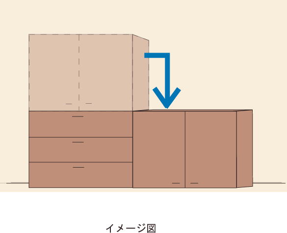・スペースなどの問題で行えない場合は、金具などで上段と下段を固定し、