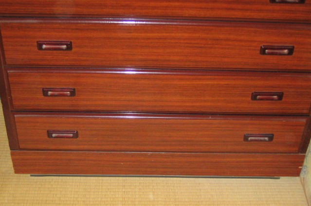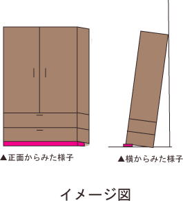 ・家具の下の前側に器具をはさみ、壁に寄りかかるように家具を置きます。