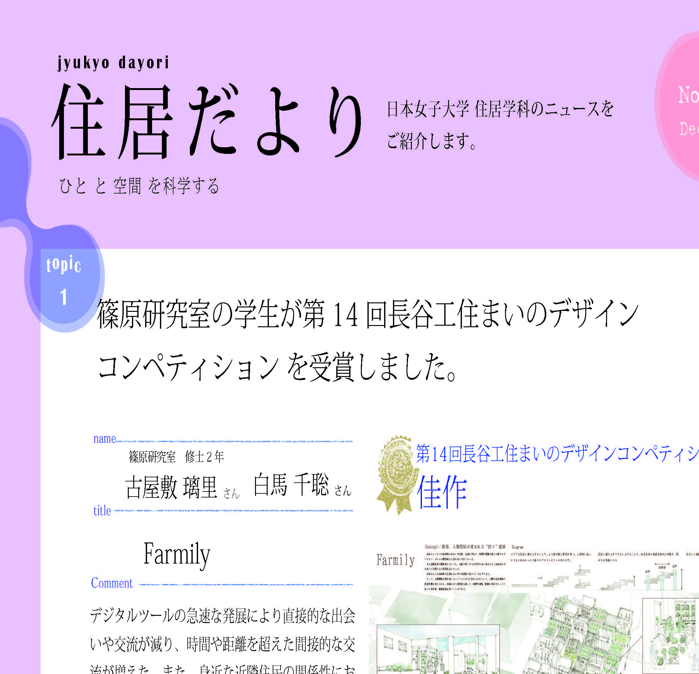 住居学科の最新ニュースをお伝えしていきたいと思います!