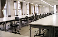 学内の学生が誰でも利用できるメディアセンターの他に、住居学科の学生専用のメディアラボ室があります。メディアラボ室では、officeの他にもCADや3D、adobe系ソフトなどが使用できます。