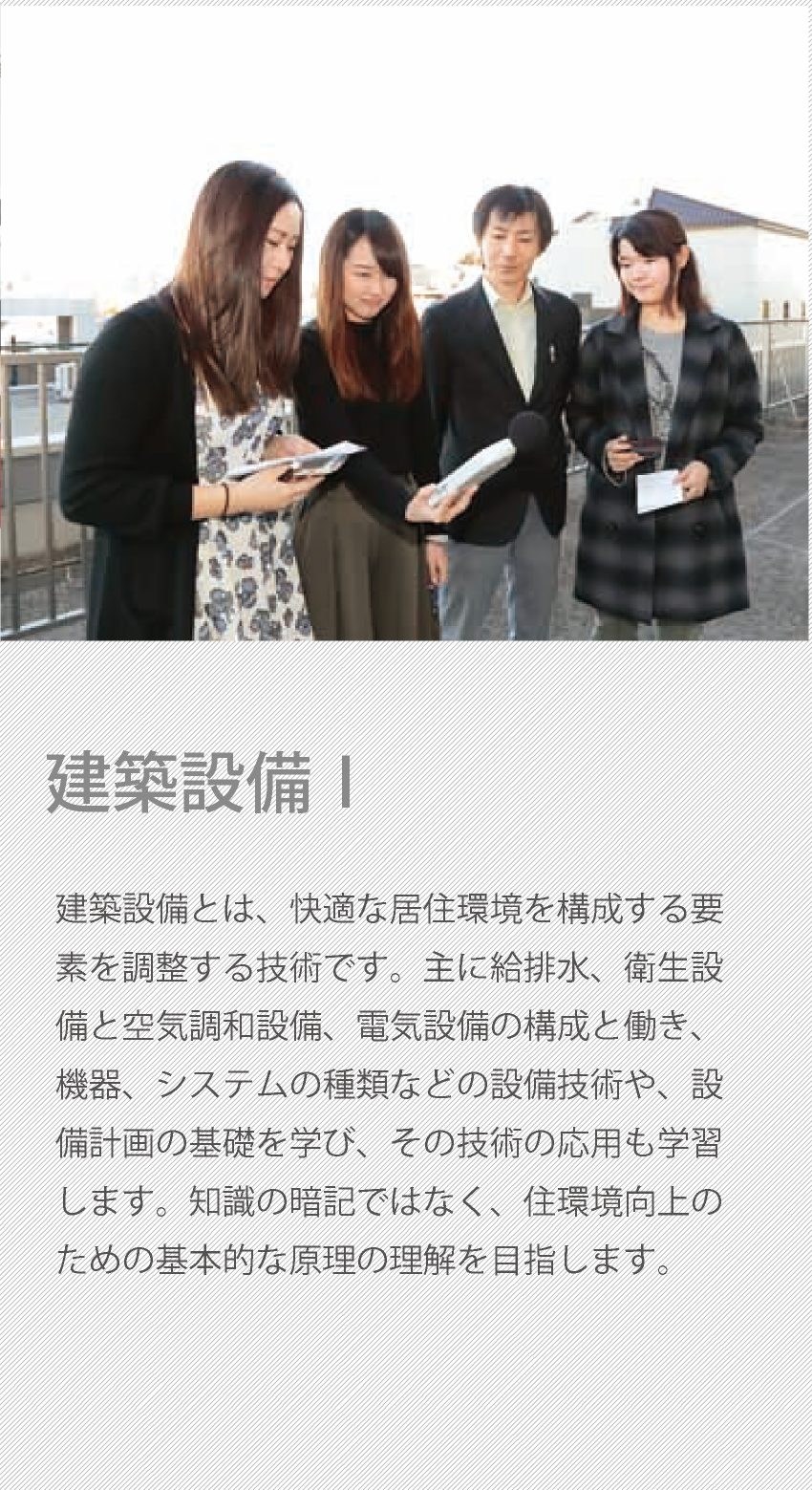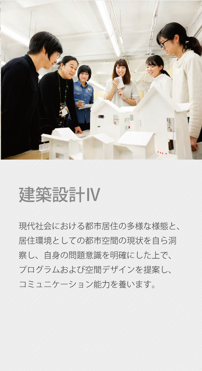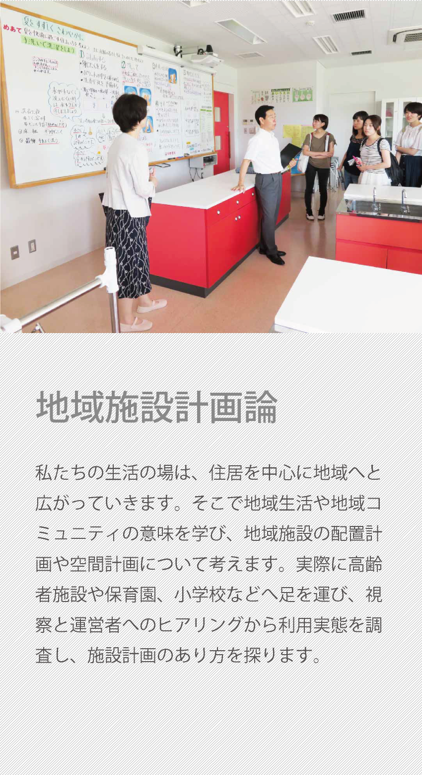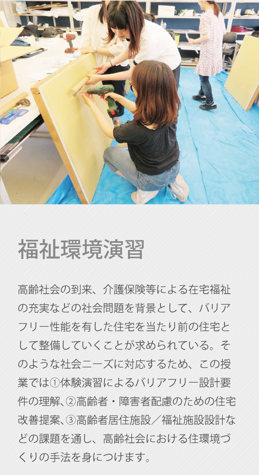 住居学の基礎となる知識や技術を身に付ける授業が主となります。
