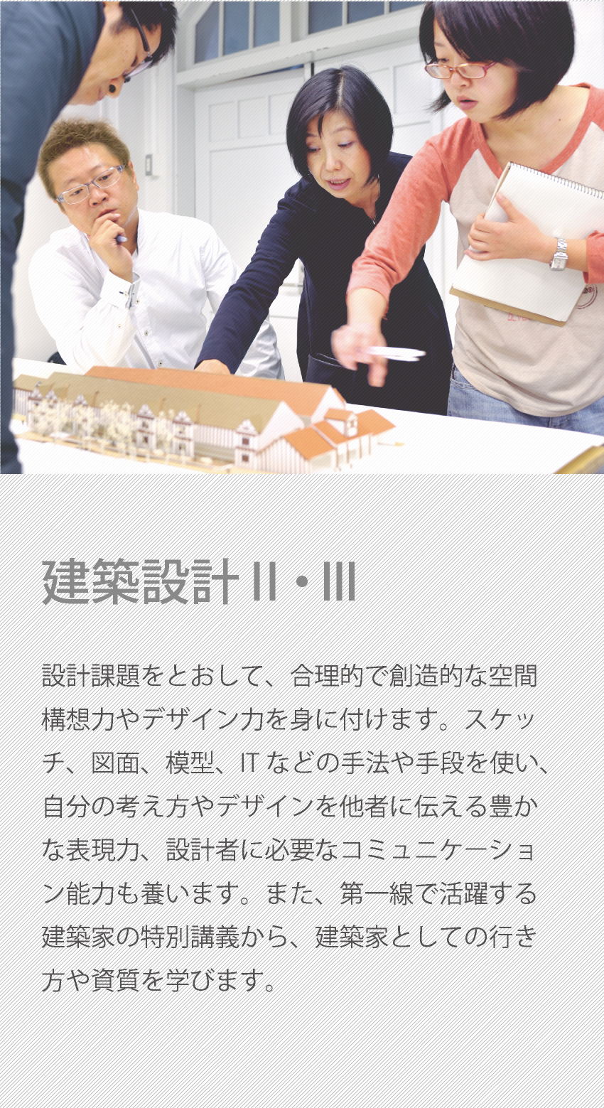 主体的に課題に取り組み建築設計の基礎を学びます。