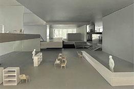 近年、建築における主軸が空間から場・物へと変わってきたと言われるように、空間と場には、空間が強くなると場が弱くなり、場が強くなると空間が弱くなるという関係性があると考える。しかし、空間と場のどちらも存在することで豊かな建築になるのではないだろうか。本設計における空間とは、気積の存在のことを指し、気積の存在を認識することを、気積にエッジがあるかのように感じる状態のことをいう。気積の存在を認識できる要素とし て、床スラブ部分の厚さが見えることや、床や天井の高さが異なることが挙げられる。また、 建築が引き起こす場というのは、座ったり視線を遮ったりする壁や床によって生まれると考える。これらの要素を用いて、錦糸公園横に図書館を設計する。床が空間を分節しながら繋がりの関係性を生み出すことで気積の存在を認識でき、壁は人の行為を分節し、囲むことで場を生み出す。建築全体に属する感覚を持ちながら、それぞれの居場所で留まれるような、建築全体が居場所になることを期待する。