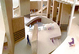この2つの構造の両面から考え、敷地をねじり引き込みつつ、大人と子ども、知と身体を繋いでいく。