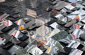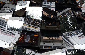 都市にはガラスや鏡などの反射面・水平面が数多くある。