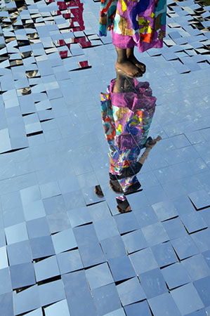 空の色や光、雲、天気、すべてを映し込み、変化し続ける。