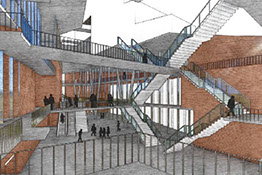 健康志向の高まりから「散歩」という歩行体験に多くの注目が集められているが、建物での歩行体験はあまり脚光を浴びていない。現代の 建築の潮流では、歩行空間は多様なアクティビティに対応できるあいまいな場に吸収され、歩行がフォーカスされるサーキュレーション(移 動空間)は失われるか、逆に隔離されるかの二極化が進んでいるように思われる。前者は空間体験に時間軸が生まれにくく、後者は空間体験 に人間の主体性がなくなり、記憶に織り込まれにくい。そこで本研究は、移動手段として道路上に便宜的に設けられた歩道橋の秘められた魅 力に着目し、建築学の先行研究から分析をする。心理的・知覚的な観点からも分析を補足して実際の建築空間の調査へと発展させることで、 歩行体験ならびに建築空間の体験を意識的に行うために必要なきっかけとなる歩道橋モデルを得る。さらに、建物の中でそのきっかけとなる 要素がどのように構成されているか考察する。その後の修士制作においては、研究で得られた歩行を喚起させる要素や構成を用いて、意識的 な歩行が喚起される新しい公共空間の設計を行う。