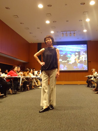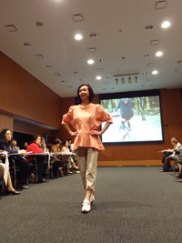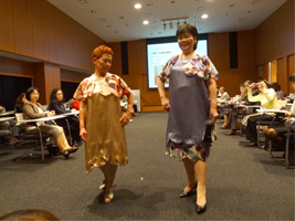 第4回目になる今回は、機能とデザインの両面から団塊の世代の装いを考え、毎日がより楽しく快適になる「とっておきの1枚」を提案するショーを、大塚研究室の学生が中心となり、企画しました。高齢者の体型特徴を捉えた衣服設計を行い、設計・デザイン共にモデルの方々に大変好評でした。