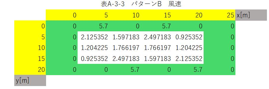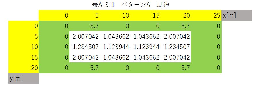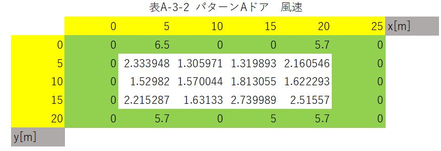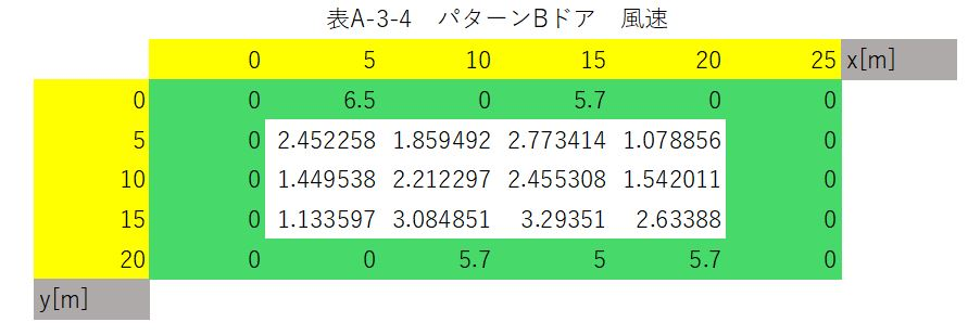 まず、ドアからの風が0m/sであると仮定した場合、各位置における風速は以下のようになる。