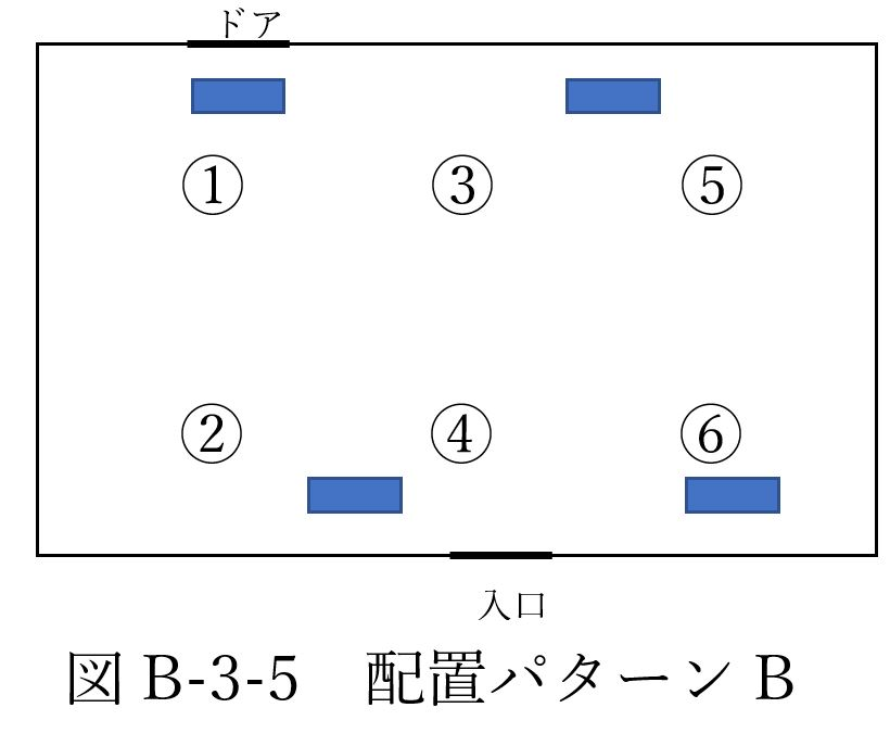 さらに、図A-2-2のように、送風機をジグザグに配置したときを仮定し、パターンBの体感温度のシミュレーションを行った。