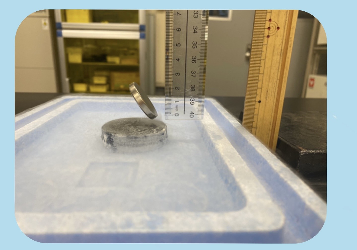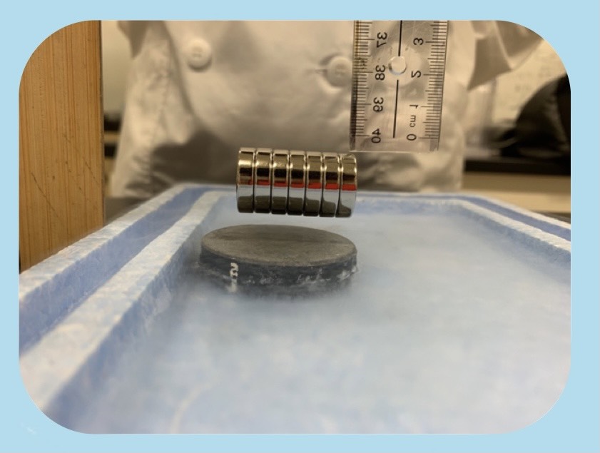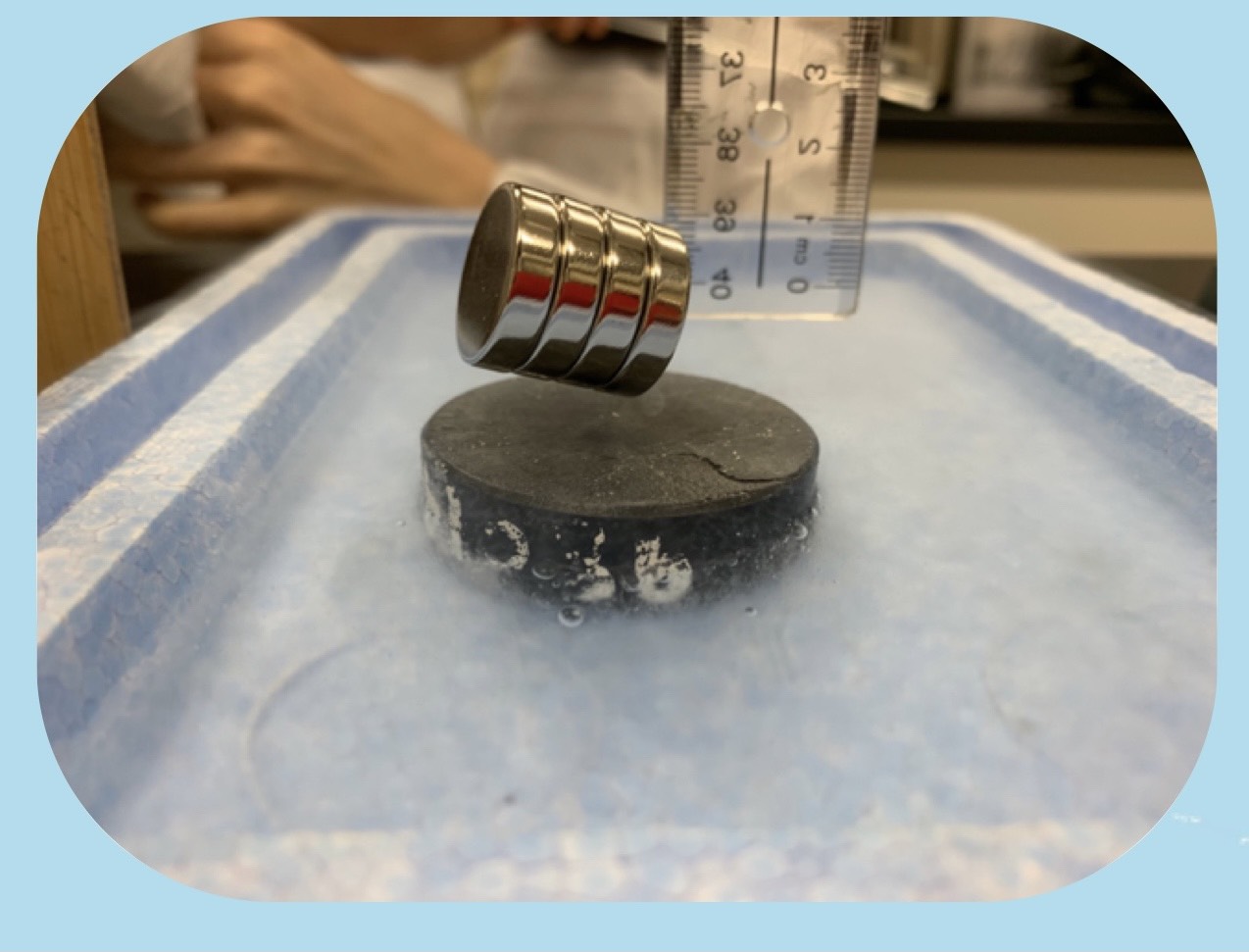 浮上距離は超伝導体の上面から、磁石の底面の中心までを測定しています。