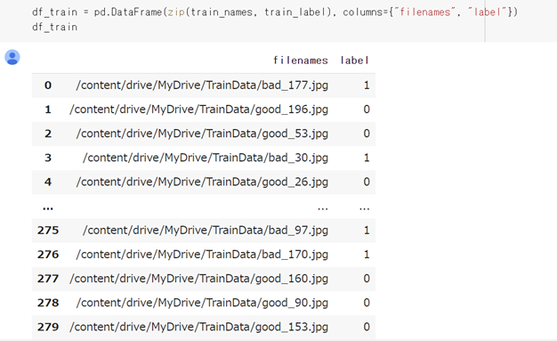読み込んだGoodとBadの画像データにラベルを付けました。