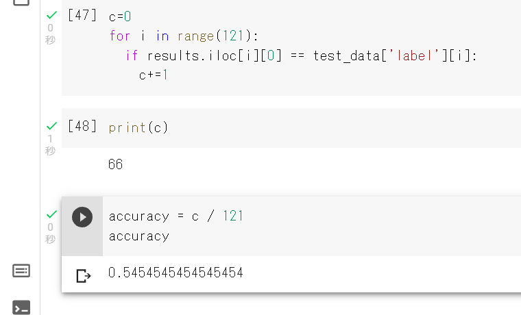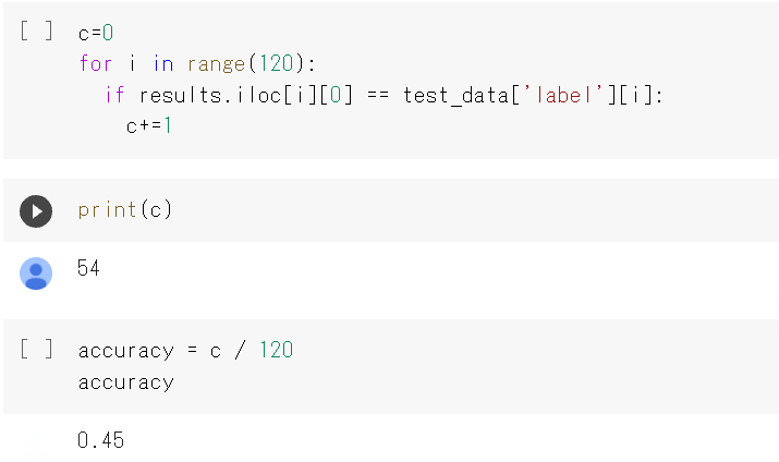 結果は、正答率が54%となり1回目よりも精度が上がりました。