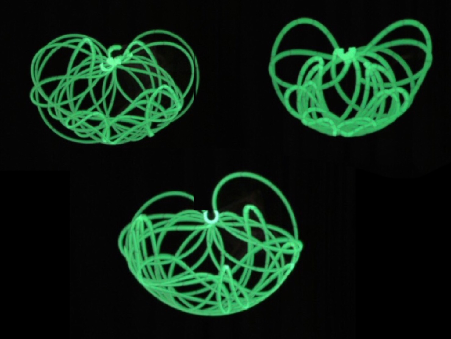 ・参考にした文献は光源にLEDを用いていたが、蓄光テープでも同様の軌道を見ることができる