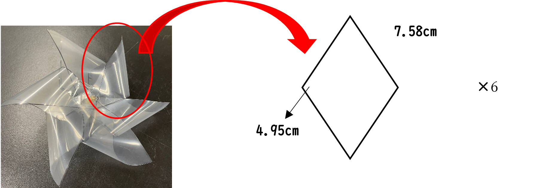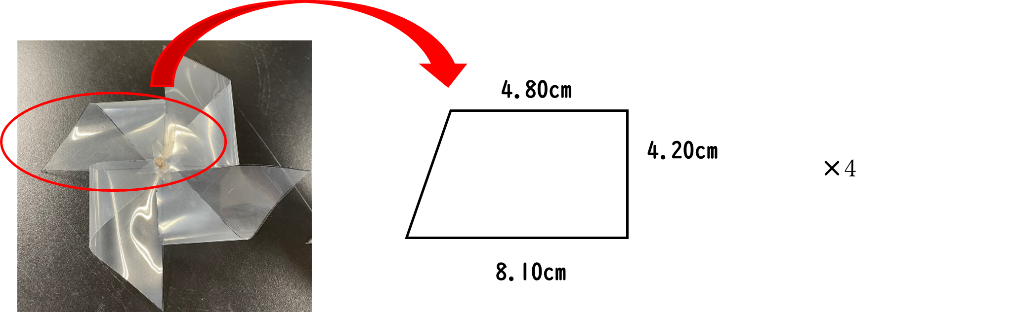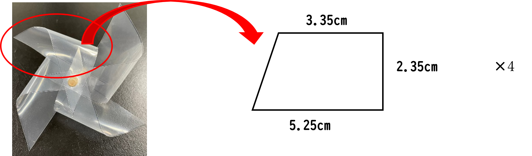 よって4枚羽(小)の表面積は\( 4.04 \times 10^{-2} \rm{m^2} \)となった。