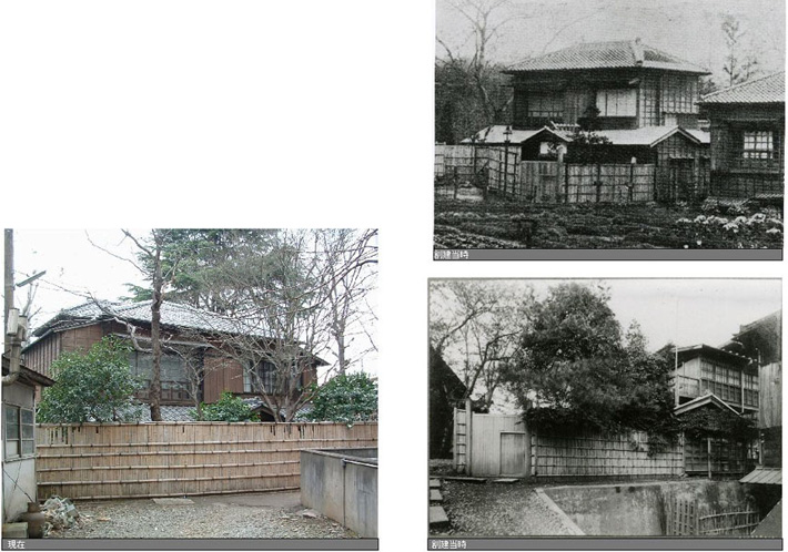 大学敷地内不忍通りに面した一角に建つ木造二階建ての建物である。