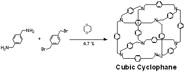 パラ置換の原料を用いるとCubic Cyclophaneが得られた。 |