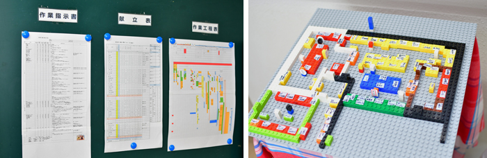 写真右:レゴを使って、人員配置のシミュレーションを行う