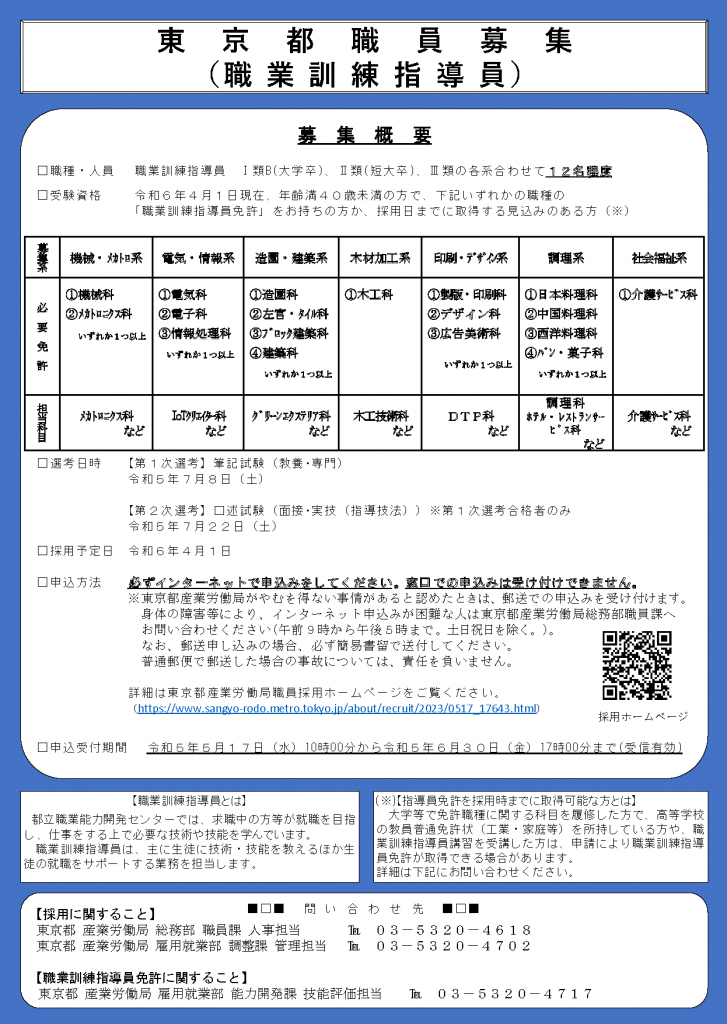 | 【詳細】 | https://www.sangyo-rodo.metro.tokyo.lg.jp/about/recruit/2023/0517_17643.html |