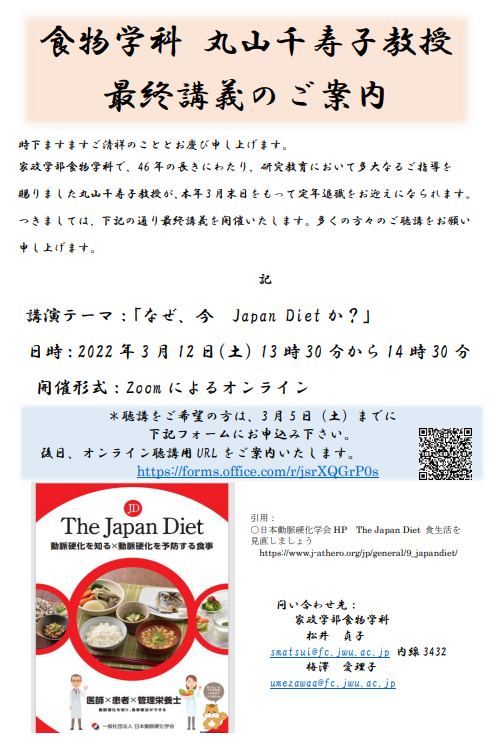 丸山千寿子教授 最終講義のご案内 (2022年3月12日(土)開催)