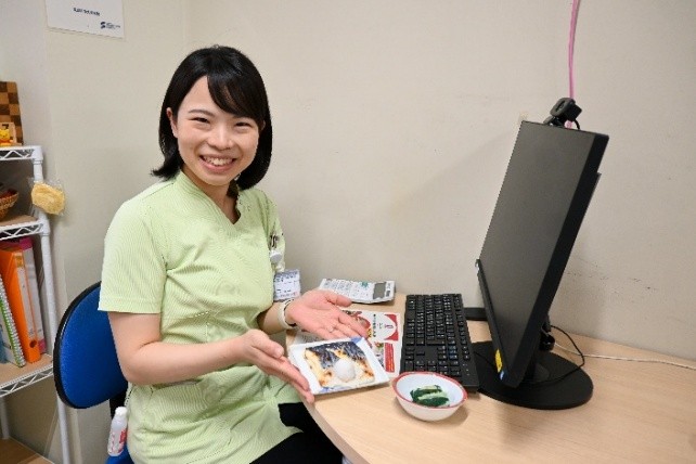 病院食では、様々な食嗜好を持つ患者さんに食べていただけるように工夫を重ねることが大切だと考えています。栄養指導においても、その場限りの知識の提供にとどまらず、食習慣を主体的に見直してもらえるように、個人個人の状況に応じた支援を心掛けています。患者さんとの関わりの中で、行動変容や病態の改善につながったと実感できたときには、管理栄養士としてのやりがいを感じます。