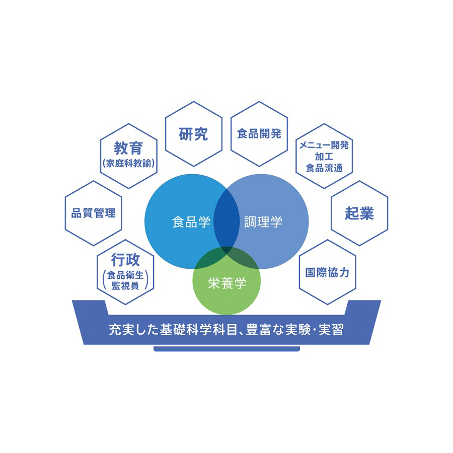 食品の機能や栄養、調理操作やおいしさを科学的に探求。人生100年時代の「食」を切り拓きます。