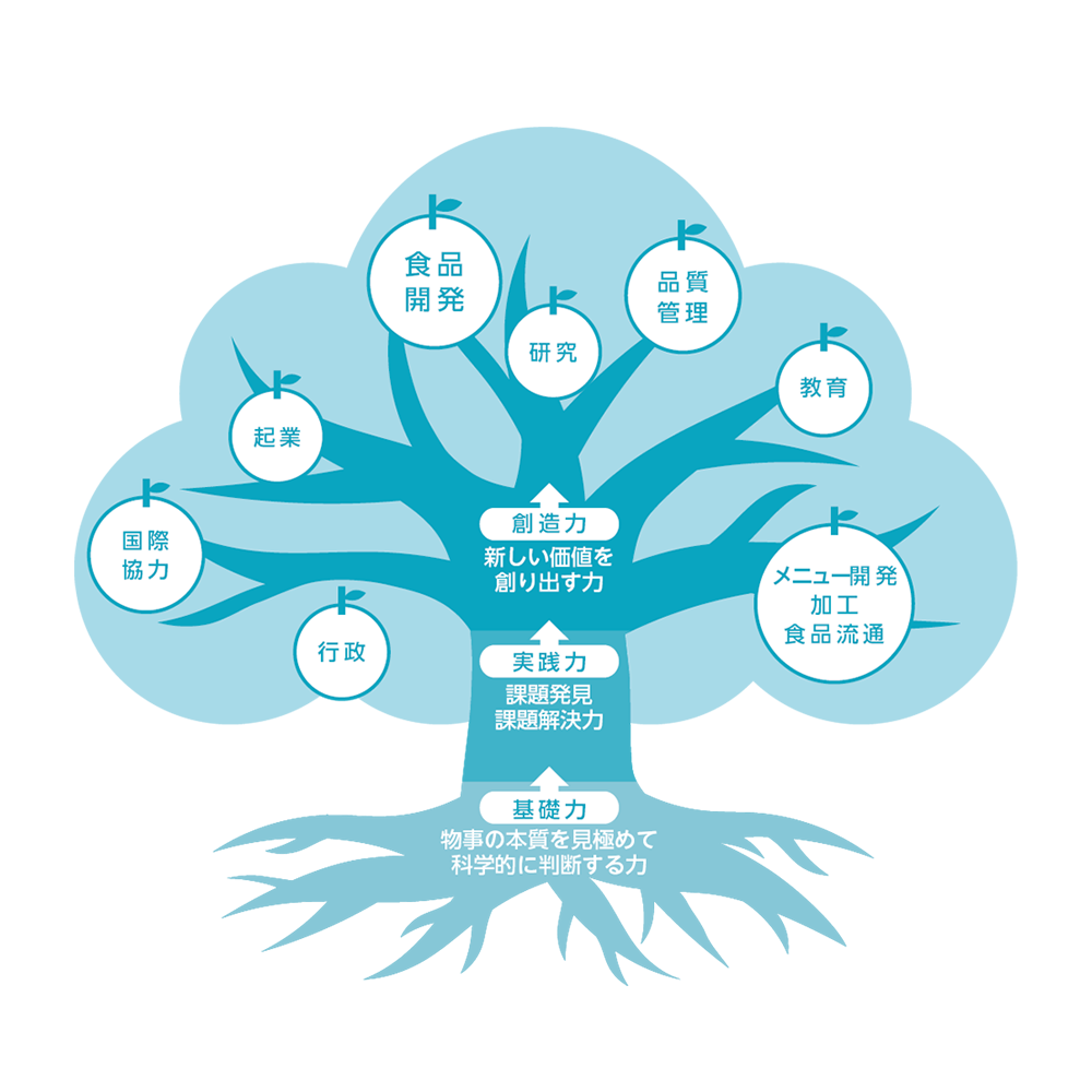 食品開発・基礎研究に携わり、社会に貢献できる人材を育成します。