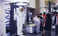 ここでは宇宙飛行士の日常生活の紹介や、日本人初の船外字宙活動を行った土井隆雄宇宙飛行士の映像を交えながら船外活動に用いられる船外活動服(EMU)について解説をいただきました。