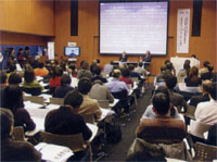 当日は、大学とヒューストンをテレビ会議で結び、土井隆雄宇宙飛行士にも参加いただき、宇宙に関心の高い一般社会人と大学生の計132名が集い、熱心な議論が展開されました。
