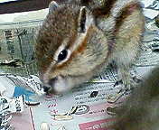 ところで・・・シマリスのほお袋って どのくらい詰め込めるのかな? ジャム、実験中! まぁ、食べたいだけだけどね(笑) |