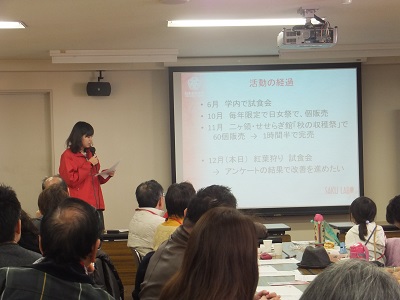 紅葉狩りと試食会でのサクラボの紹介の様子
