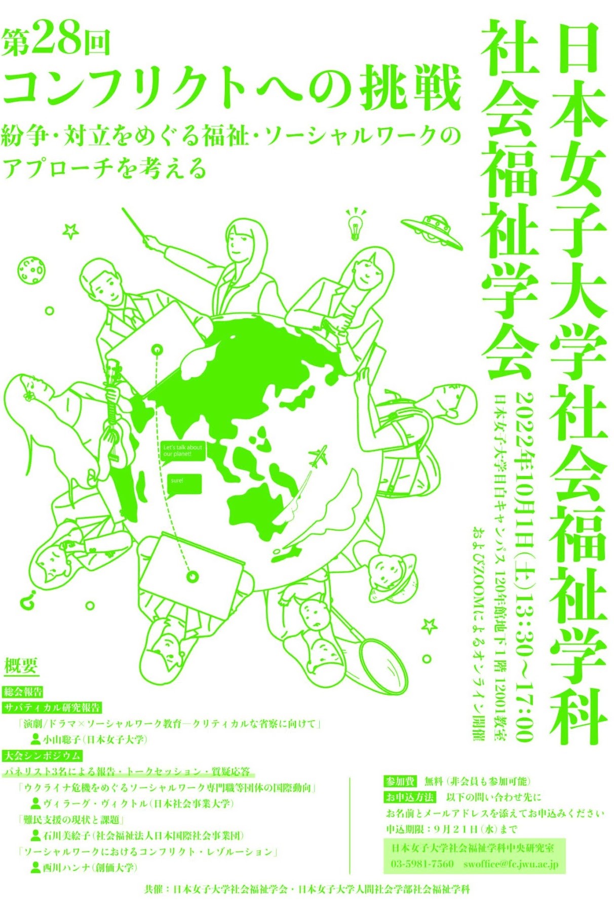 ◆日時・形態 日時:2022年10月1日(土)13:30~17:00 場所:日本女子大学目白キャンパス 120 年館地下1階 12001 教室 およびZOOMによるオンライン開催 … 続きを読む 第28回日本女子大学社会福祉学会大会