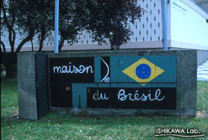 テラスの境界壁はブラジルの国旗と同じ色に塗られている。 |