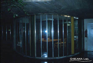 カメラの絞りのような窓は、太陽光線の強さによって自動的に絞りを制御されている。 |