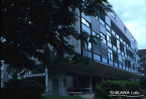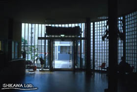 外壁はプレハブのパネルを用い、合理化を図っている。