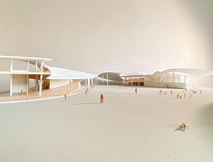 制作では公共建築での共話のありかたとして、地域のための交流センターを設計する。人と建築が対話を超えて共話するということは、人が自分の身体や気持ちに気づき時間を過ごすことにつながる。