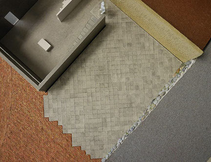 レンガやタイルの目地、苔の生えたコンクリートの目地など、建築の表層には、見る人の情感や気分を揺れ動かす力があると考える。本制作では、建築表層を形づくるマテリアル分析をも元に、人間の感情、身体的なアフォーダンスに着目することで、空間の設計を行う。建築表層、つまり装飾が空間構成足り得る可能性を探る。そしてその時表層は、深淵なる存在となる。
